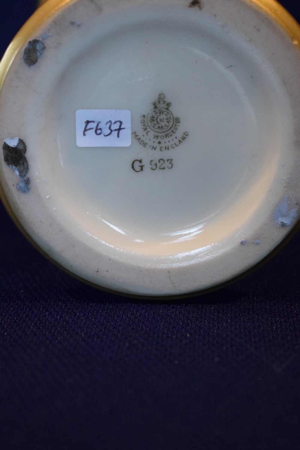 A Royal Worcester hand painted spill vase decorated with pheasants in a landscape by James Stinton. Finely decorated landscape with a cottage in the background. In excellent condition throughout, Factory marked with a date code for c1926, signed Jas Stanton, app. 7.5" (19.5cm) tall.