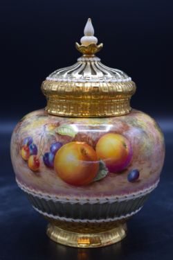 A good Royal Worcester painted fruit vase and cover decorated all round by J Reed. Larger of the 2 sizes this vase comes in and in perfect original condition, signed J Reed.