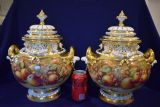 Royal Worcester pair of painted fruit Medium size Bow vases