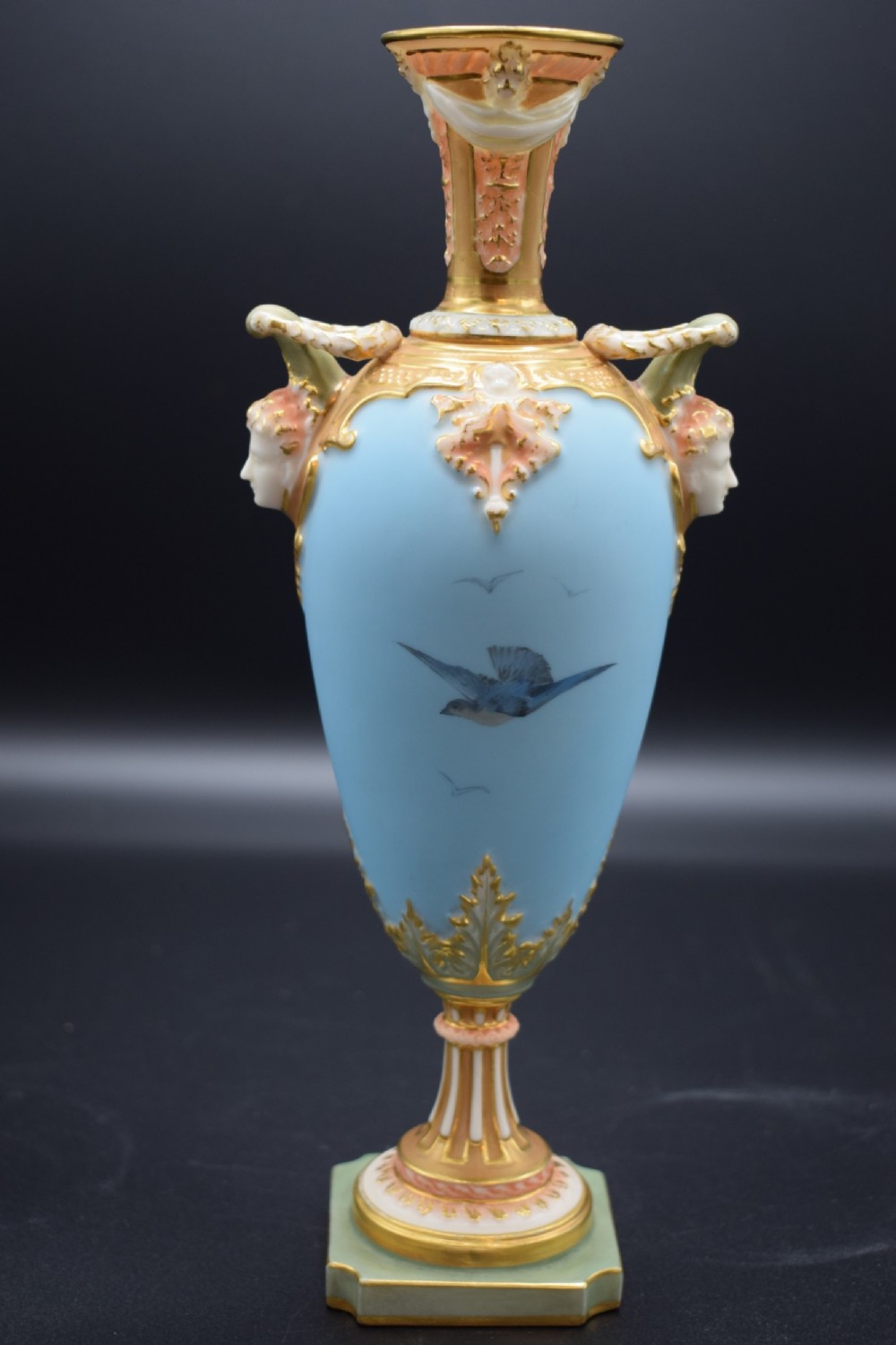 A very good Royal Worcester vase decorated with fantail doves by Charles Baldwyn. Another rare subject by Baldwyn, Factory marked and in excellent original condition. App. 10.75" (27.5cm) tall, date code for c1903, signed C Baldwyn.
