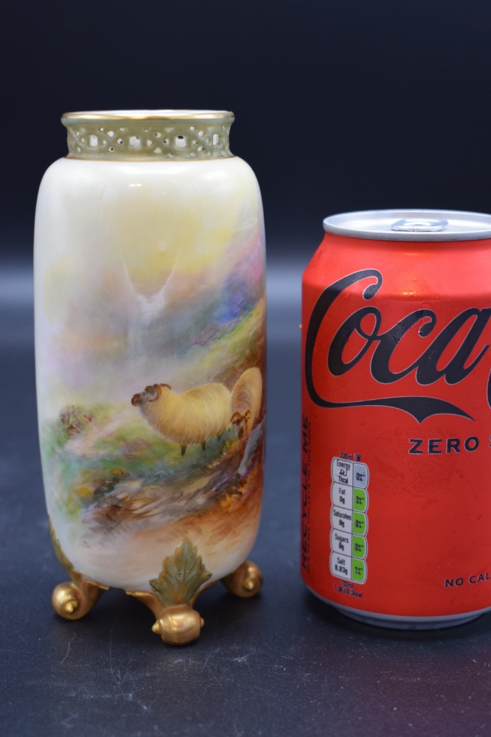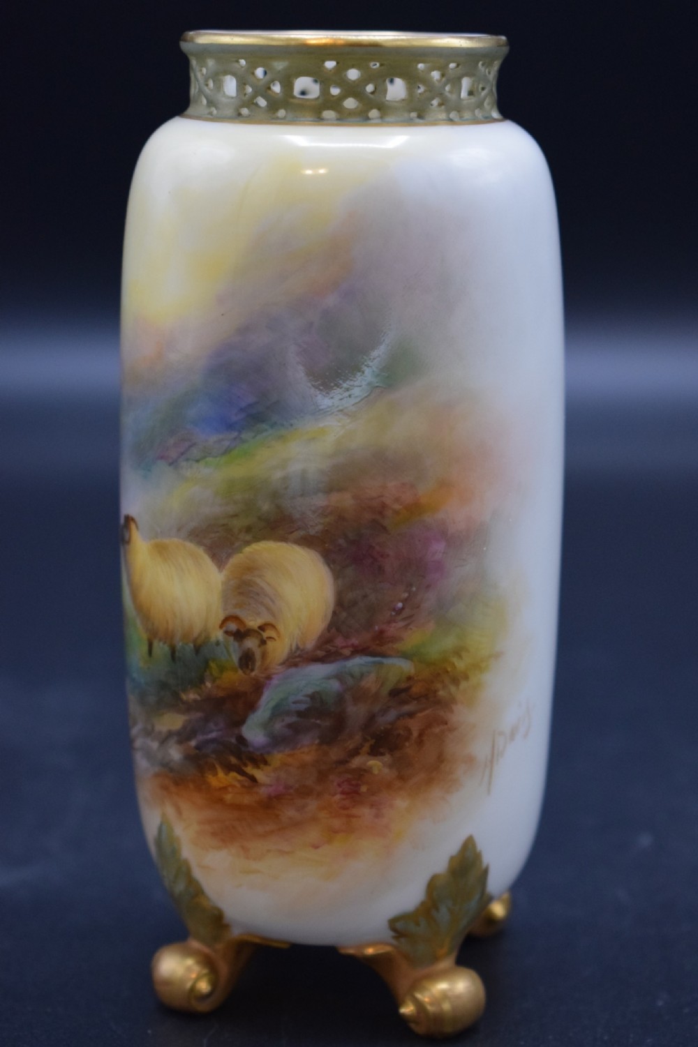 A good Royal Worcester spill vase decorated with sheep a highland landscape by Harry Davis. Perfect original condition, no damages or restoration. Two coloured gilding, App. 5.5" (14.5cm) tall, signed H Davis