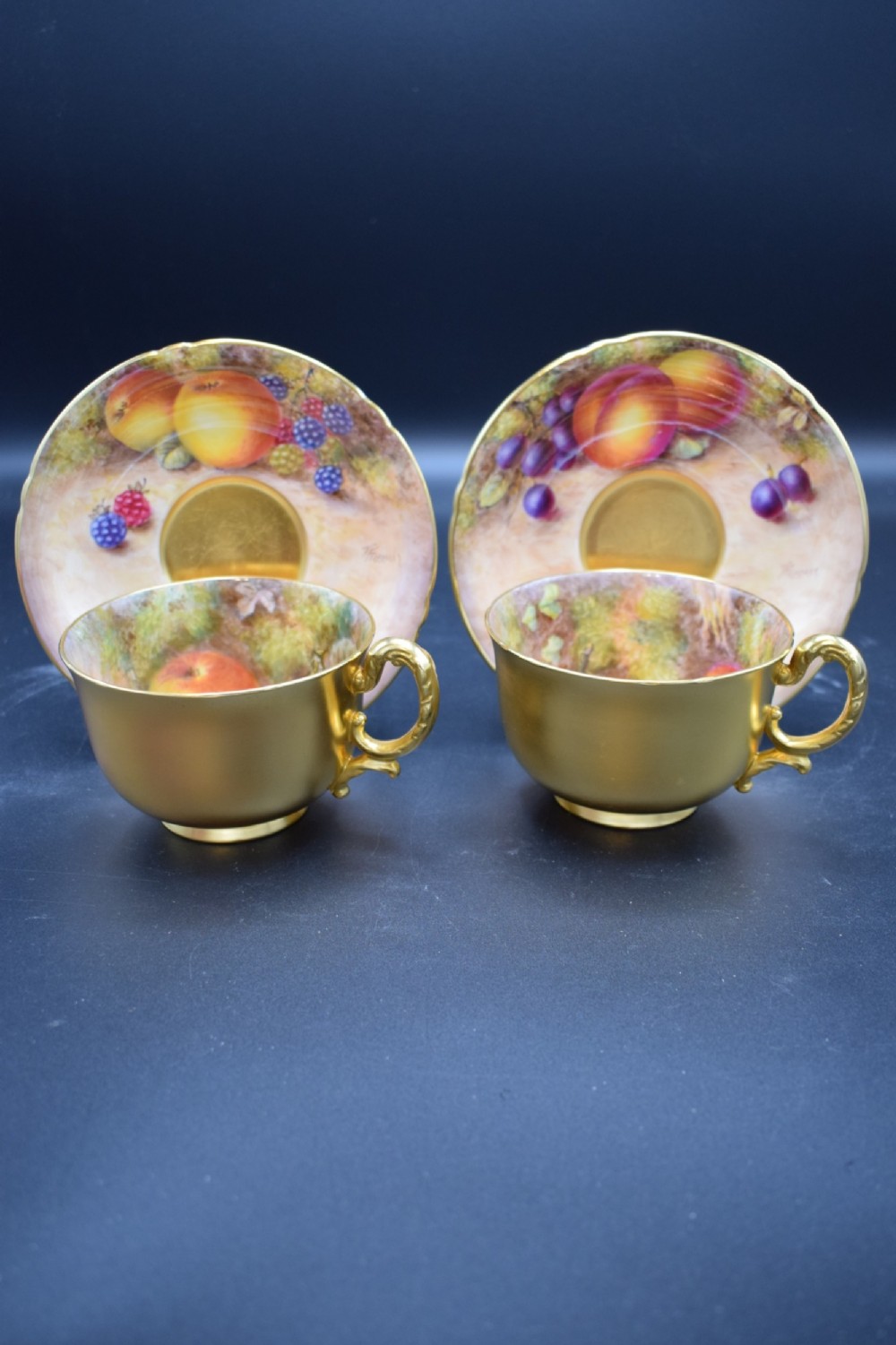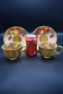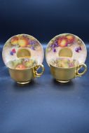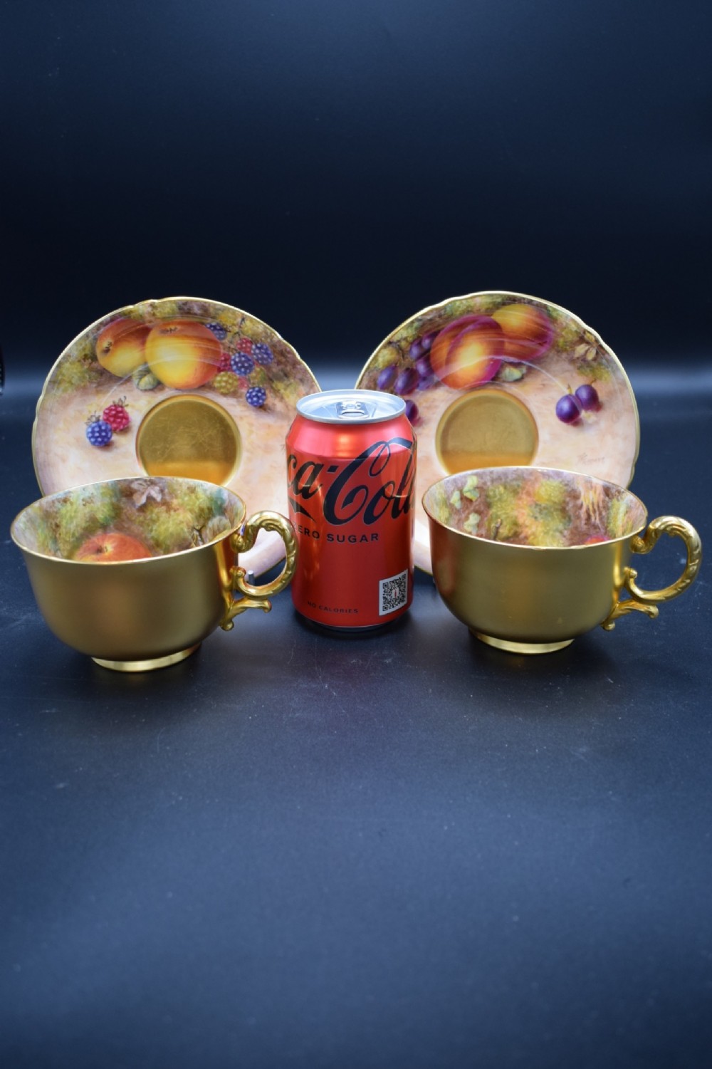 A fine and scarce pair of large size painted fruit Breakfast cups and saucer decorated by Freeman. In excellent original condition, matching fruits to each cup/ saucer and with black Factory marks with date codes for c1950. All pieces signed Freeman.