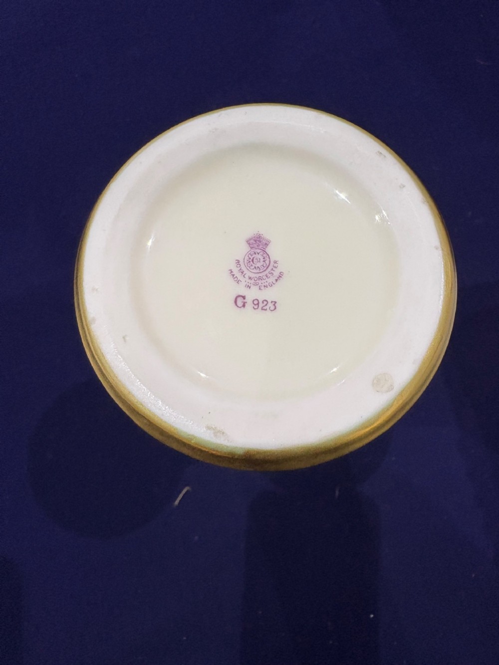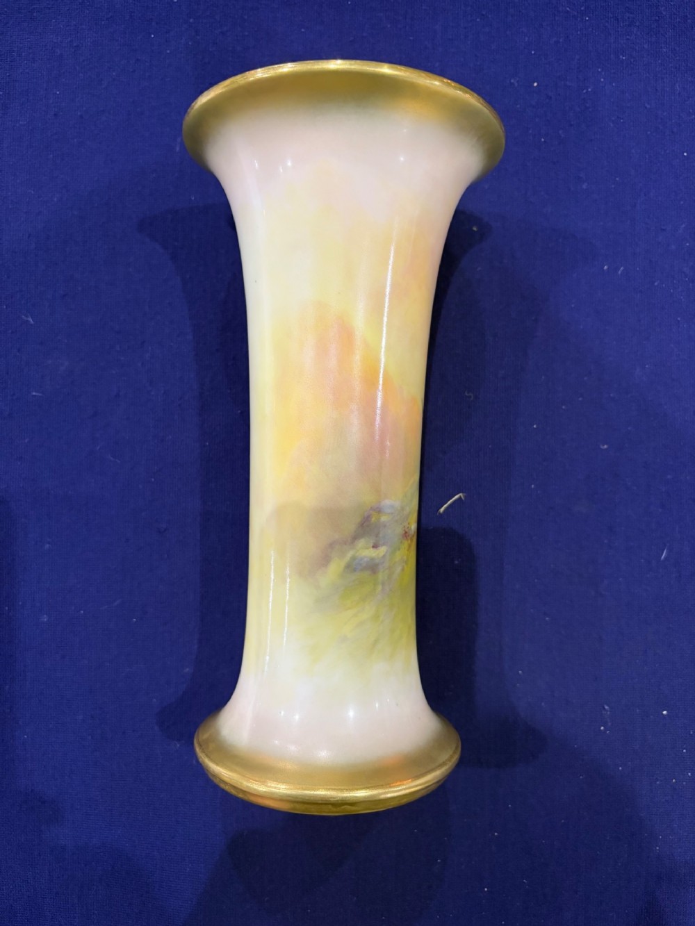 A good Royal Worcester spill vase decorated with highland cattle in a landscape by Harry Stinton. Perfect original condition, no damages or restoration. App. 9” (23cm) tall, date c1938, signed H Stinton