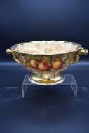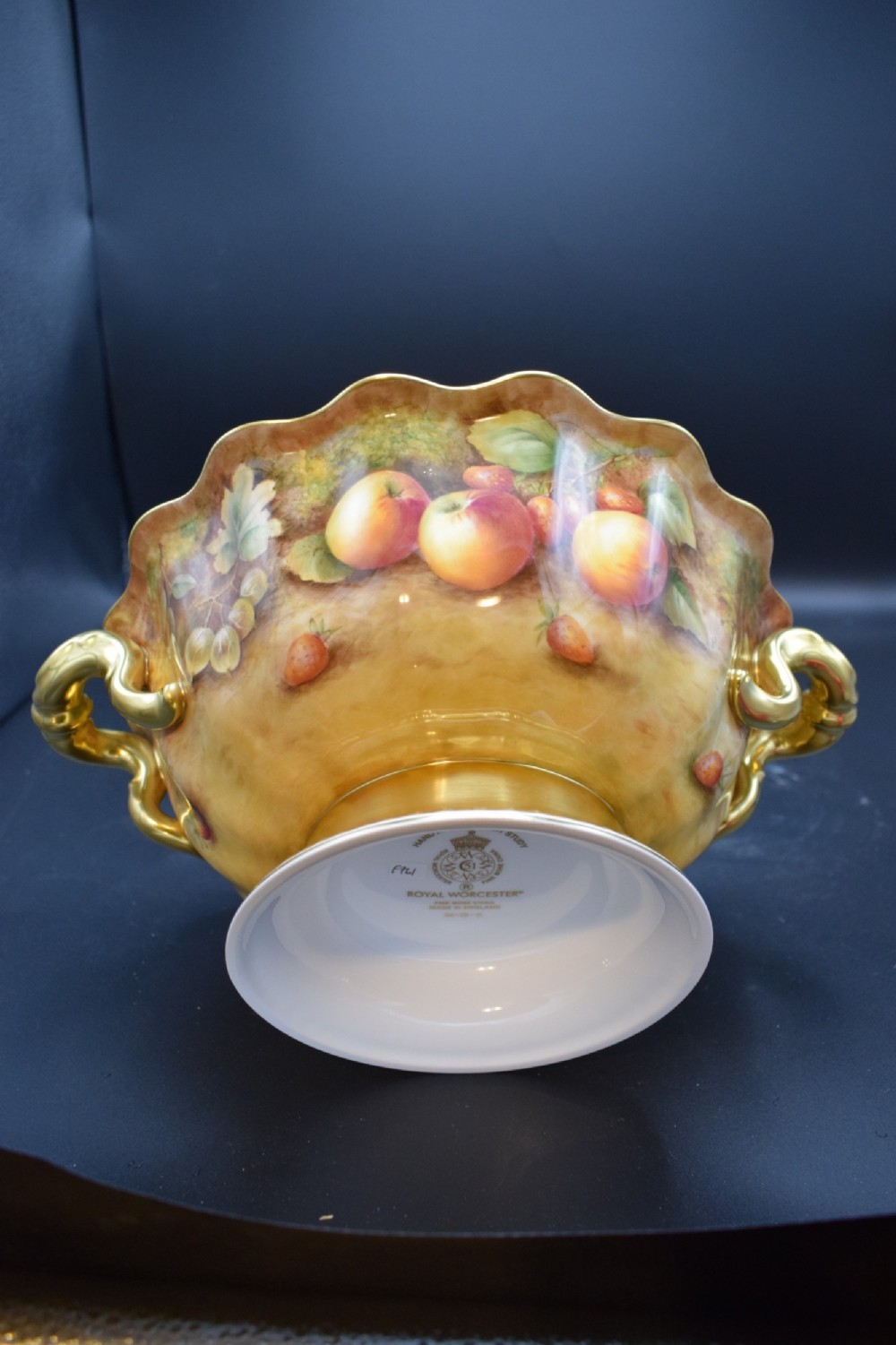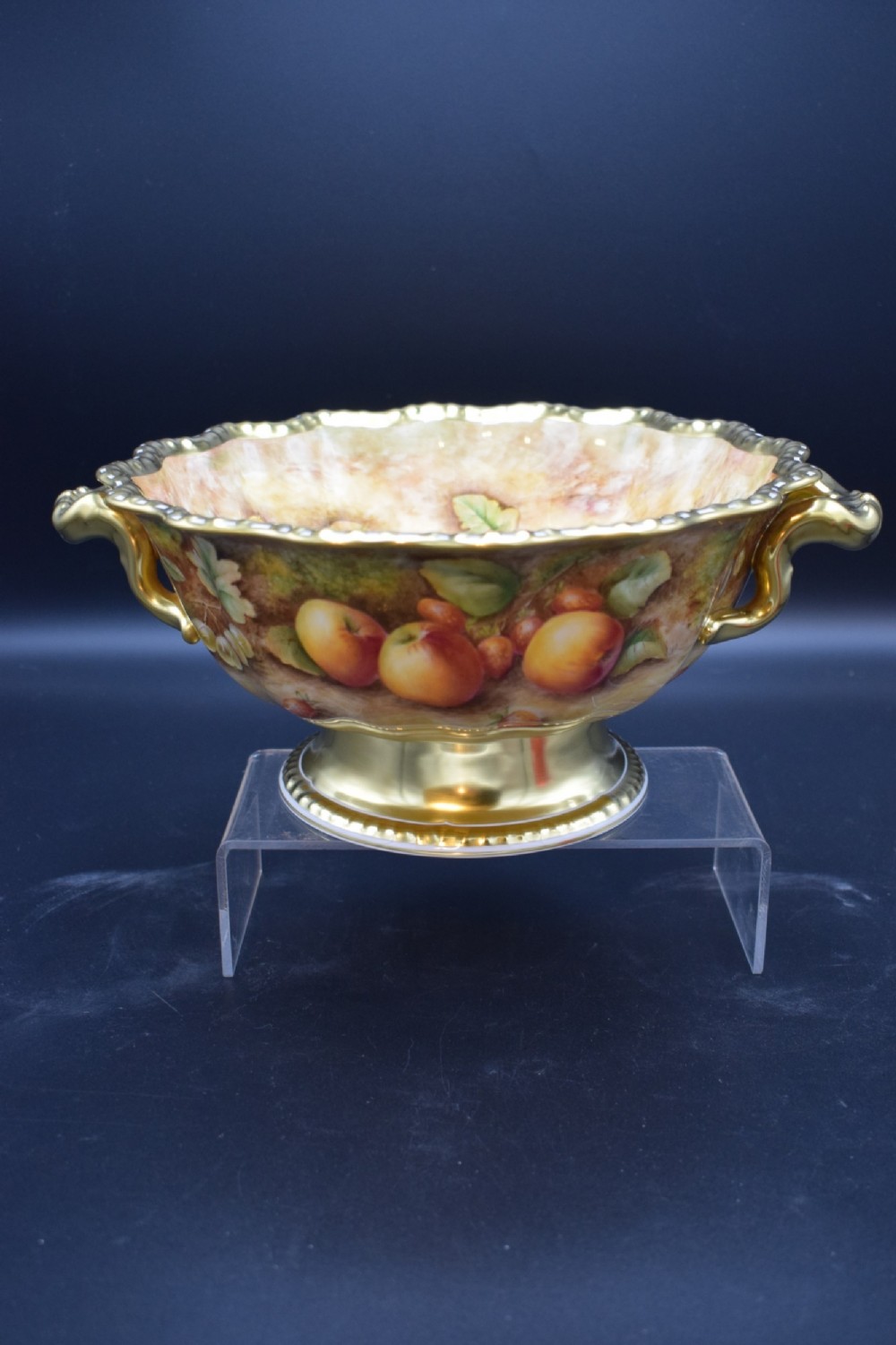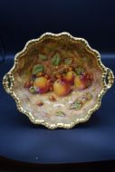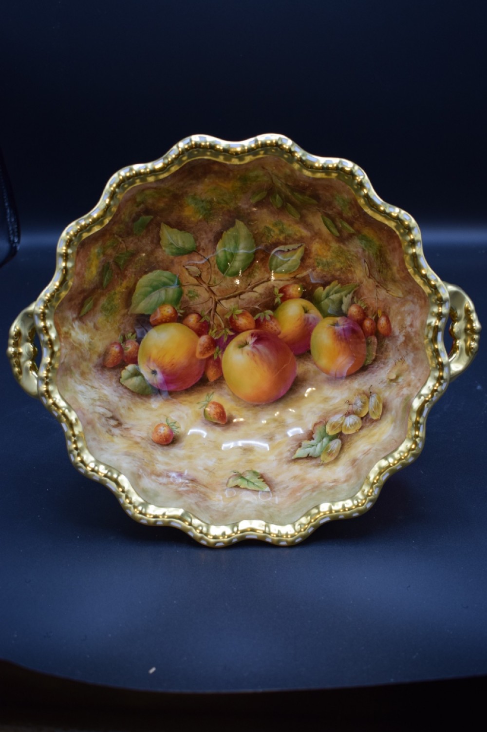 A good Royal Worcester painted fruit Gadroon bowl decorated by Paul English. Boxed and new condition, no damages or restoration. App. 13" (33cm) across. Signed P English.