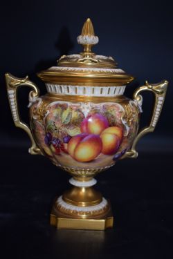 Royal Worcester pair of painted fruit XL “Jumbo” Bow vases by S Wood.