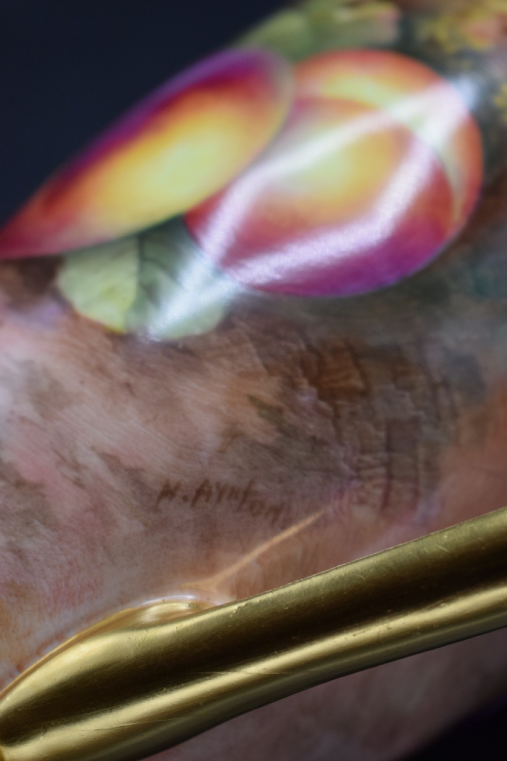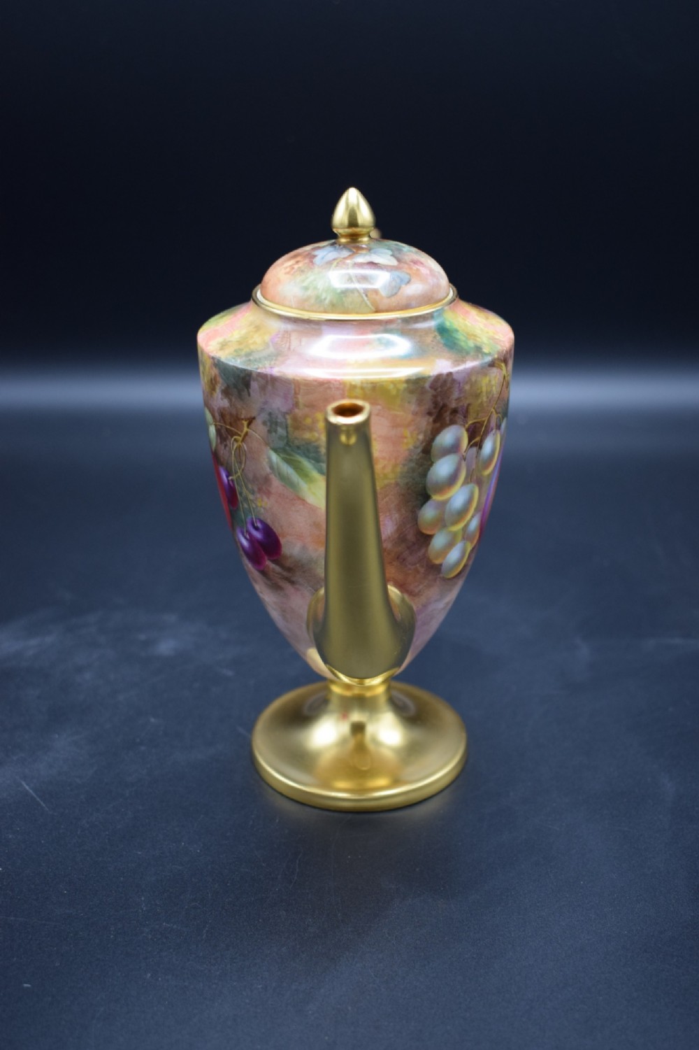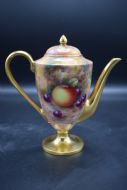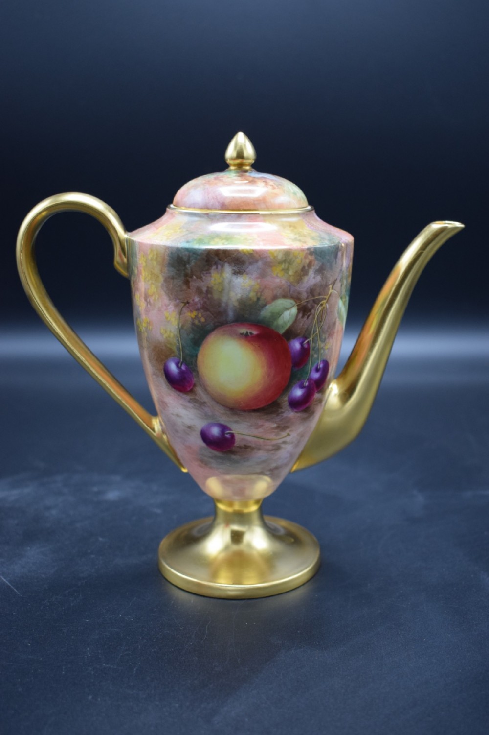 Royal Worcester painted fruit coffee pot signed H Ayrton