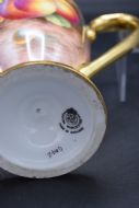 A fine Royal Worcester painted fruit coffee pot and cover decorated by Harry Ayrton. Early example in excellent original condition, no damages or restoration. app. 8.25( (21cm) tall, dated c1940's