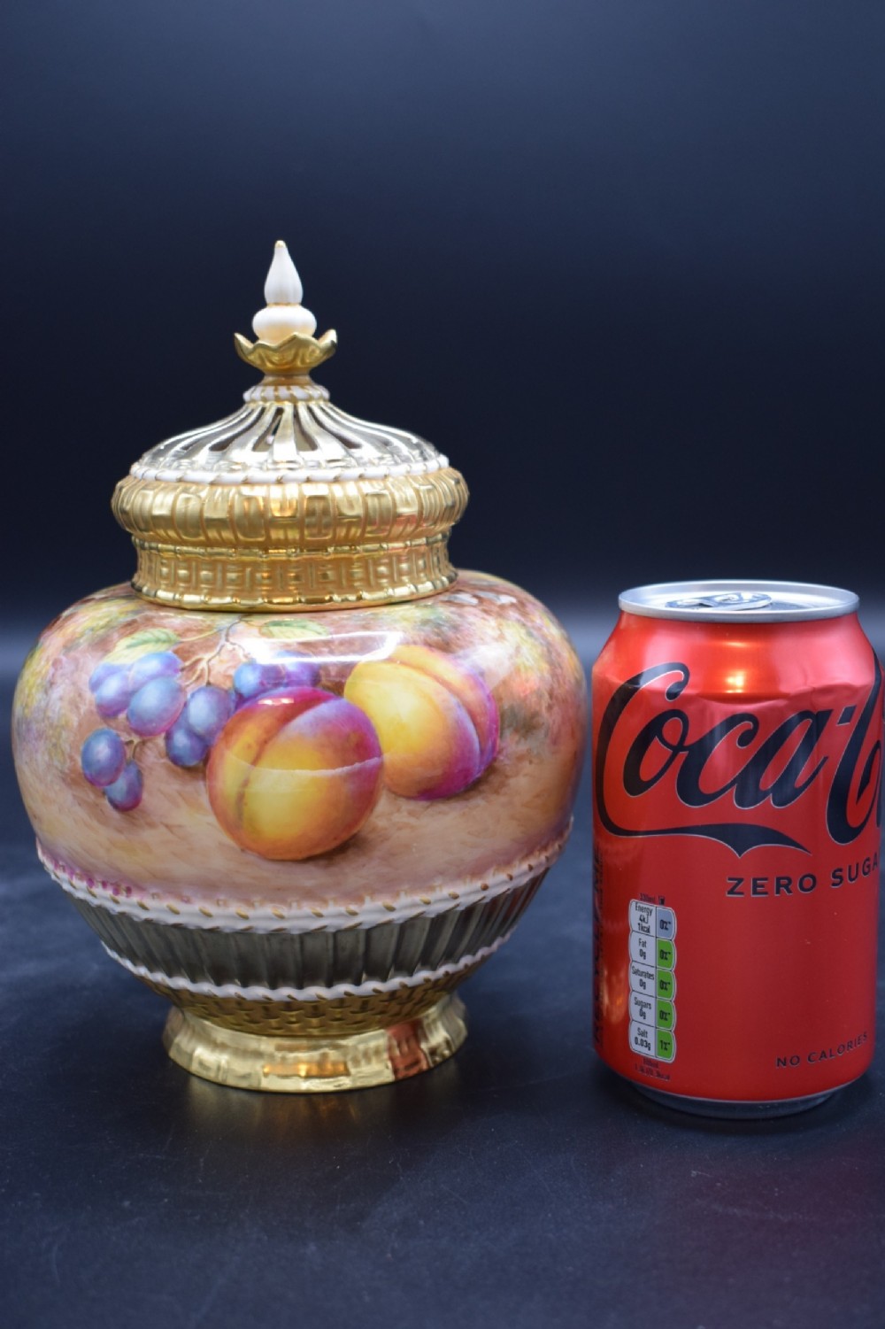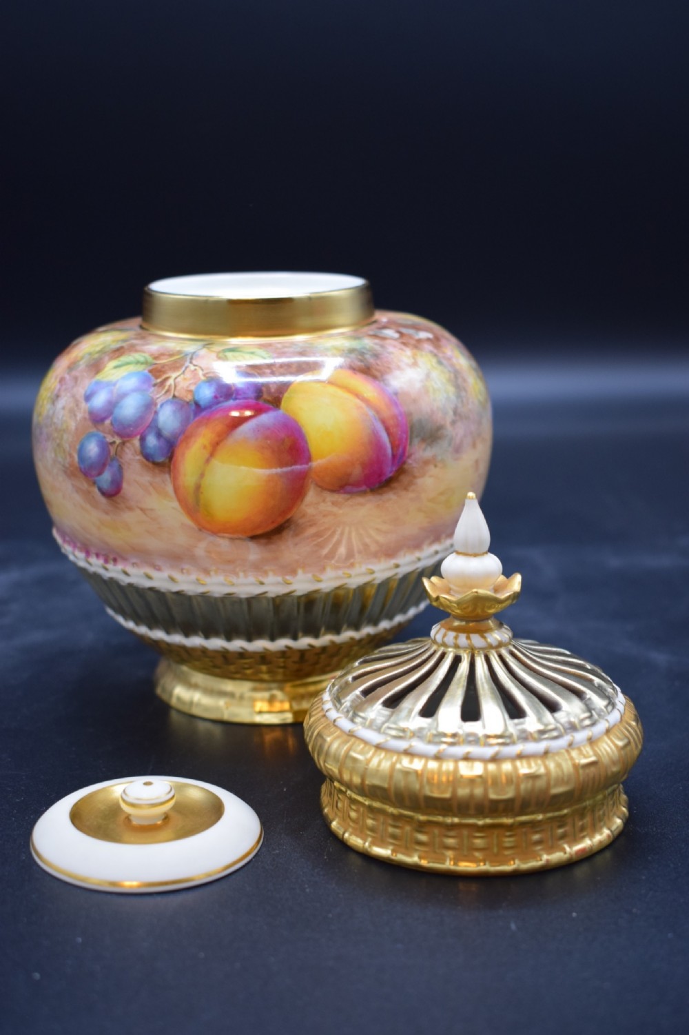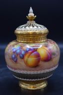 Royal Worcester painted fruit pot pourri vase