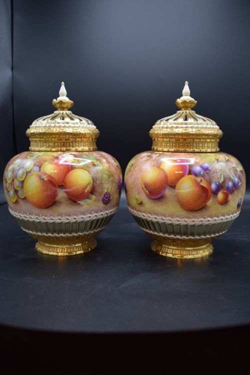 Royal Worcester pair of painted fruit pot