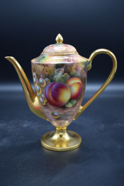 Royal Worcester painted fruit coffee pot signed